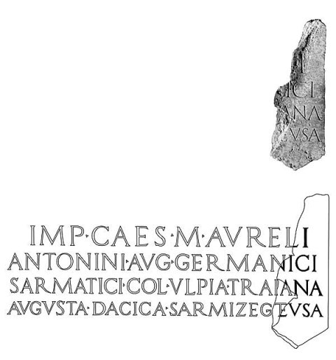 - [--- pro salute?] / [Imp(eratoris) Caes(aris) M(arci) Aure]li / [Antonini Aug(usti) Germa]nici / [Sarmatici col(onia) Ulpia Trai]ana / [Augusta Dacica Sarmizeg]e[t]usa