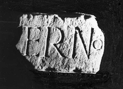 - Fragment vom Abacus eines Kapitells, auf der Oberseite Reste von Statuenfüßen ?