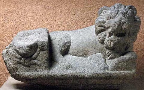 - nur rechter Löwe und Teil des Mittelstücks erhalten