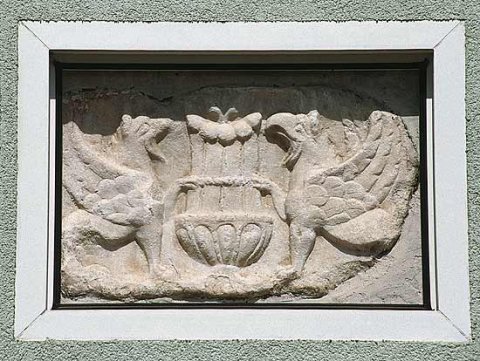 - Mythische Figur: Gefäß mit Pflanze zwischen zwei Greifen.