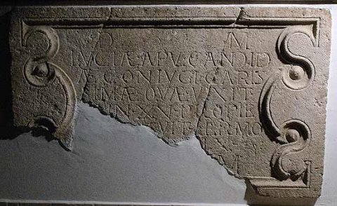 - D(is) M(anibus) / Luciae Apul(eiae) Candid/ae coniugi caris/simae quae vixit / [a]nn(os) XXV pro pie/[tate po]suit Hermo/[---]ix [b(ene)] m(erenti)
