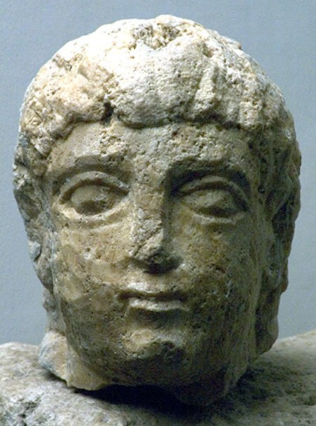 - Köpfchen eines Knaben mit glattem, in die Stirn gekämmtem Haar