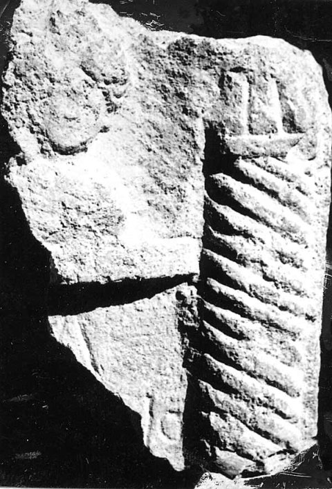 - Rest des Bildfeldes mit profiliertem Bogen auf Säule mit Spiralkanneluren, Büste eines Kindes (Mädchen).