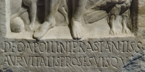 - Deo Apollini pra(e)stantiss(imo)/ Aur(elius) Vitalis pro se suisq(ue) v(oto) l(ibens) p(osuit).