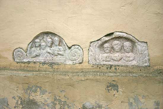 1112 Aschenkistendeckel mit Grabrelief einer Familie