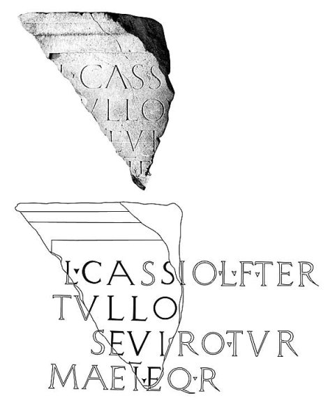 - L(ucio) Cass[io L(ucii)? f(ilio) Ter?/t]ullo [---] / [s?]evi[ro tur]/[mae] I e[q(uitum) R(omanorum) ---] / [---