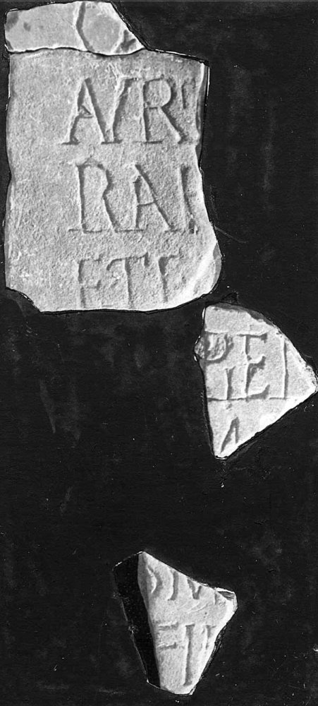 - Q[---] / Aur(elius) ?T[---]us tesse/rar[ius coniu]x eius / et EI[---] filius / [?matri] pien[tissi]m(a)e / [---]M[---] / [---] / [---]?iius / [--- bene mere]ntibus // [---]SM[---] / [---]fil[---