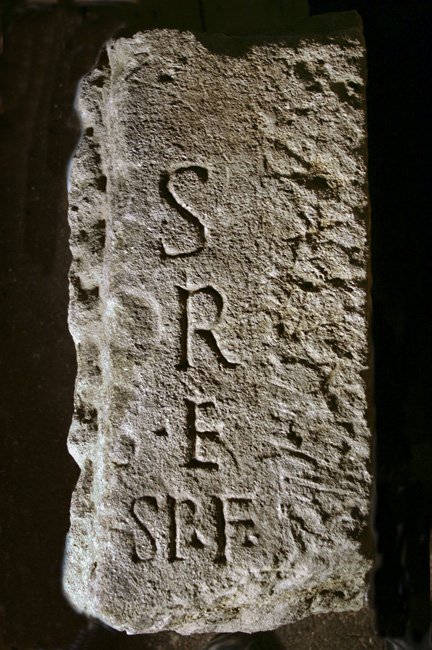 - ---] / [---] / [---]us / ---]or / [--- h(ic)] s(itus) e(st) / [---] Sp(uri) f(ilius) / [---