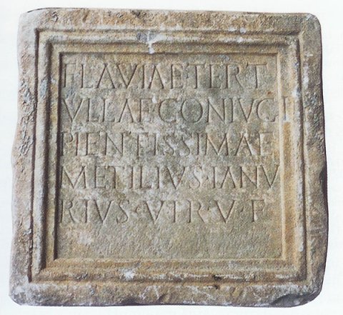 - Flaviae Tert/ullae coniugi / pientissimae / Metilius Ianu/arius vir v(ivus) f(ecit)