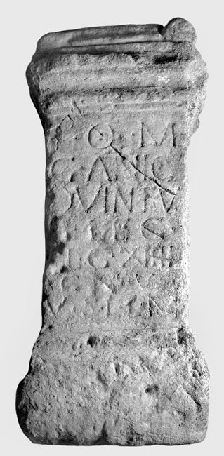 - I(ovi) O(ptimo) M(aximo) / G(aius!) Anic(ius) / Quintus / b(eneficiarius) leg(ati) / leg(ionis) XIIII / G(eminae) M(artiae) V(ictricis) / v(otum) s(olvit) l(ibens) l(aetus) m(erito)