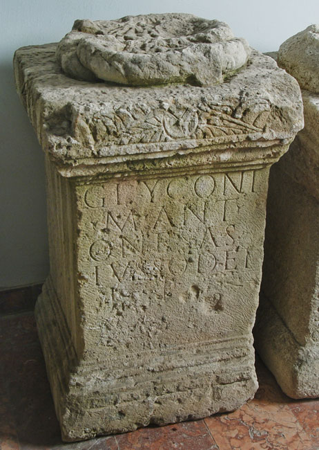 - Glyconi / M(arcus) Ant(onius) / Onesas / iusso dei / l(ibens) p(osuit)