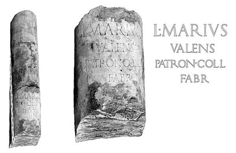 - L(ucius) Marius / Valens / patron(us) coll(egii) / fabr(um).