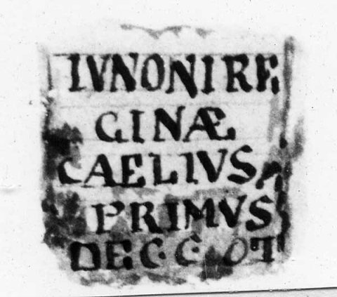 - Iunoni re/ginae / C(aius) Aelius / Primus / dec(urio) col(oniae)