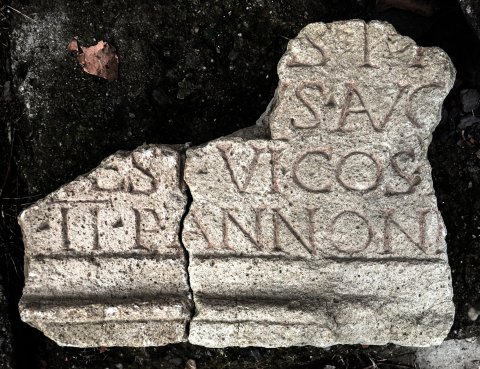 - Ein Teil der in 1906 gefunden Inschrift ist inzwischen verlorengegangen.