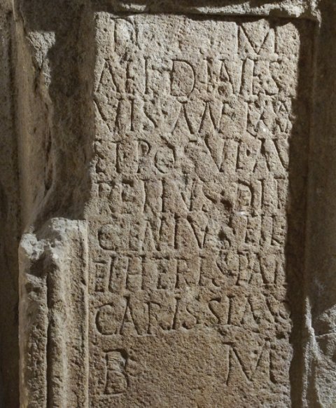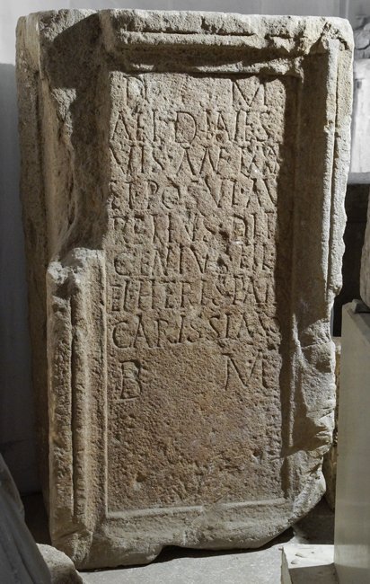 - D(is) M(anibus) / Ael(ius) Dines / vix(it) an(nis) LXXXV / et posui(t) Au/relius Ditu/gentus filiu(s) / et heres patri / carissimo / b(ene) m(erenti)