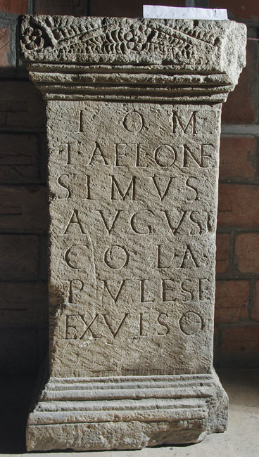 - I(ovi) o(ptimo) m(aximo) / T(itus) Ael(ius) One/simus / August(alis) / col(oniae) A/pule(n)se / ex viso