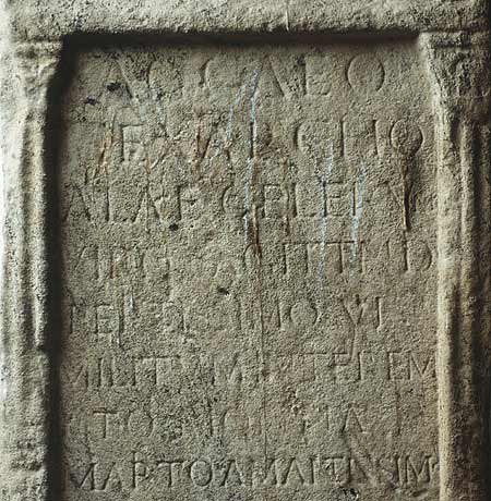 - Aggaeo / hexarcho / alae Celerum / viro sagittandi / peritissimo vi / militum interem/to Monna / marito amantissimo