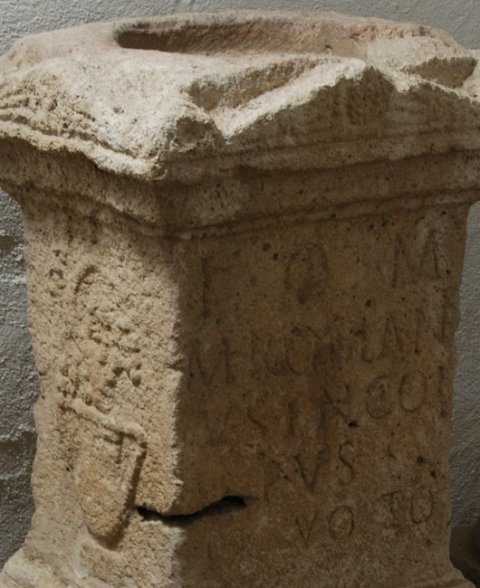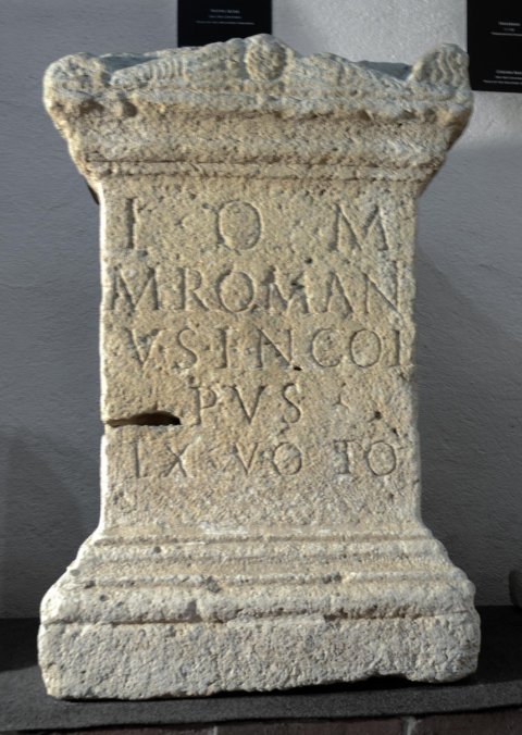 - I(ovi) o(ptimo) m(aximo) / M(arcus) Romani/us Encol/pus / ex voto
