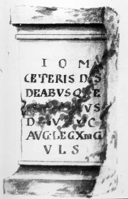 - I(ovi) o(ptimo) m(aximo) / ceteris dis / deabusque / [[ [---]us]] / [[ P[---]u[s le]g(atus)]] / Aug(usti) leg(ionis) XIII G(eminae) / v(otum) l(ibens) s(olvit)