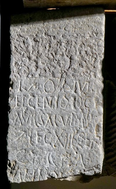 - I(ovi) O(ptimo) M(aximo) et Gen/io loci / Aur(elius) Salvianus / (centurio) leg(ionis) XIII gem(inae) / c(ohortis) II [ --- ] / ANNSV[-] / [ ---