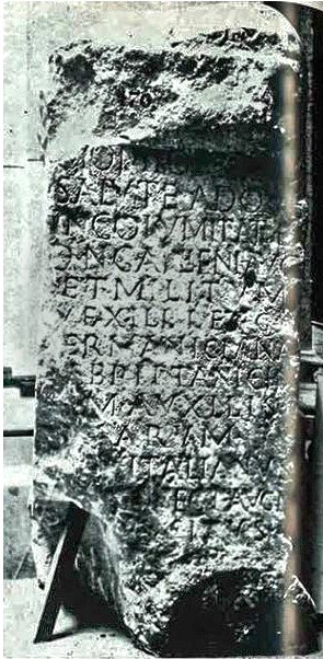 - [I(ovi) o(ptimo)] m(aximo) / Monitori pro / salute adque / incolumitate / d(omini) n(ostri) Gallieni Aug(usti) / et militum / vexill(ationum) legg(ionum) / [G]ermaniciana[r(um)] / [e]t Brittanicin(arum) / [cu]m auxili(i)s / [e]arum / [ --- V]italianus / [--- pro]tector Aug(usti) n(ostri) / [praepo]situs / [voto] p(osuit)