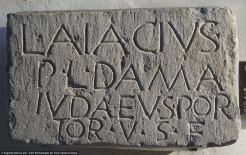 - L(ucius) Aiacius / P(ubli) l(ibertus) Dama / Iudaeus por/tor v(ivus) s(ibi) f(ecit)