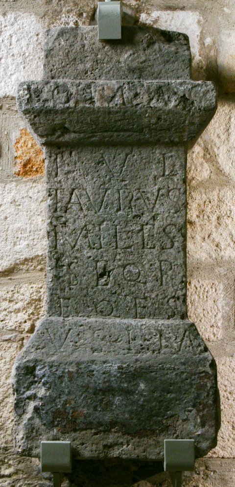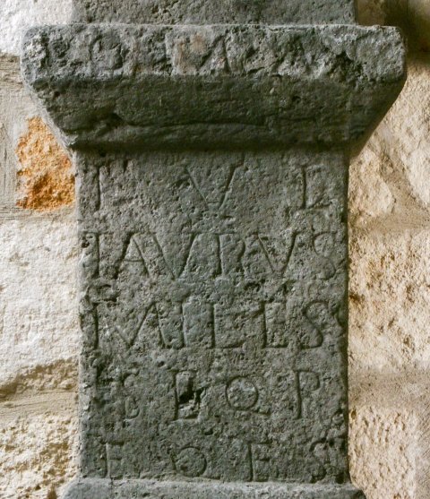 - I(ovi) o(ptimo) m(aximo) A[u]g(usto) / Iul(ius) / Taurus / miles / se(s)q(ui)p(licarius) / eques / v(otum) s(olvit) l(ibens) m(erito)