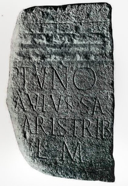 - [Ne]ptuno / [G]avius Sa/[lu]taris trib(unus) / [v(otum) s(olvit)] l(ibens) m(erito