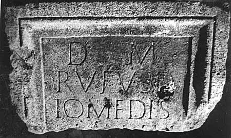 - D(is) M(anibus) / Rufus D/iomedis / v(ixit) an(nis) ?LV (?IV) / [---