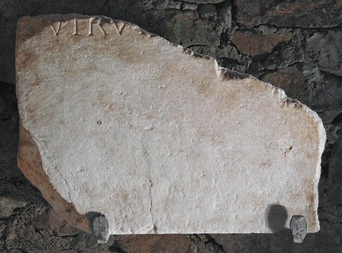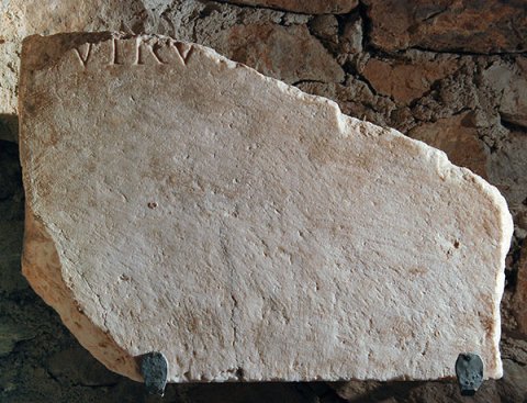 - im Grabungsgelände in Raum OR/16 an der Südmauer aufgehängt