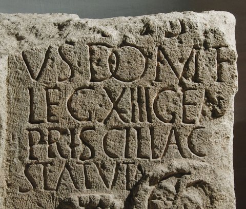- ---] / [---]ius [---]an/nus dom(o) F[aventi]a vet(eranus) / leg(ionis) XIII Gem(inae) [vix(it) an]n(is) LX ?Ul(pia) / Priscilla c[o(n)iugi et V]eratia / Statuta f(ilio) b(ene) m(erenti) / pos(uerunt)