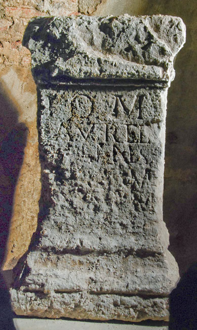 - I(ovi) O(ptimo) M(aximo) / Aurel(ius) / [Val]ens / [---]M[P?] / ? [v(otum) s(olvit) l(ibens)] m(erito)