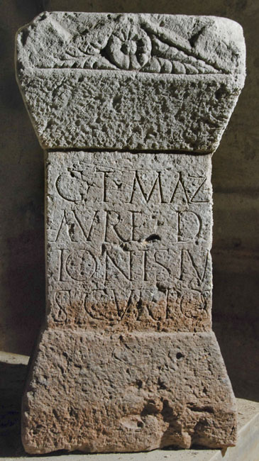 - G(enio) T(ur)maz(gadi) / Aurel(ius) D/ionisiu/s cur(ator) pos(uit)