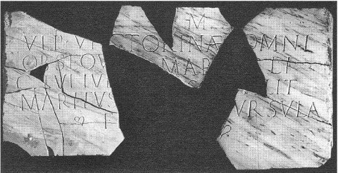 - [D(is)] M(anibus) / Ulp(iae) Victorinae omni / obsequ[io] mar[it]ali / C(aius) Iul(ius) Iul[ianu]s [a] m[i]lit(iis) / maritus [et Iulia] Ursula / fi[lia]