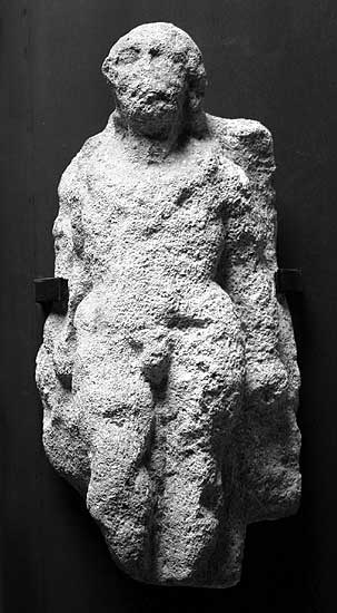 - Mythische Figur (Ikarus): stehender nackter Jüngling mit langen Locken, Handgriffe an den Flügeln.