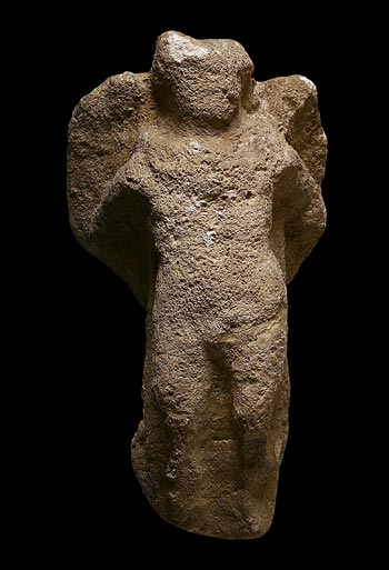 - Mythische Figur (Ikarus): ausgebreitete Flügel mit Riemen an Oberarmen befestigt.
