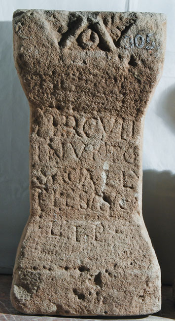 Popa: "Herculi / invicto / sac(rum) Ael(ius) / Ties (?) aur(arius ?) / l(aetus) l(ibens) p(osuit).