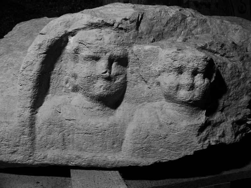 11986 Aschenkistendeckel mit Grabrelief von Frau und Kind