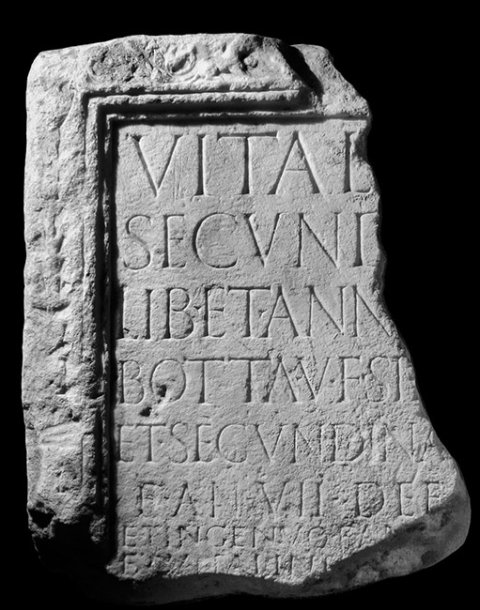 - Vital[is] / Secund[i] / lib(ertus) et Ann[ia] / Botta v(ivi) f(ecerunt) si[bi] / et Secundina[e] / f(iliae) an(norum) VII def(unctae) / et Ingenuo Sab[ini] / et Vitalini [---]