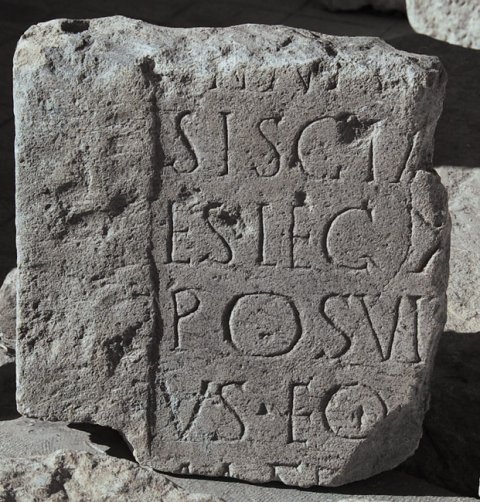 - ---] / [-]?IINI [- ? domo] / Siscia [mil]/es leg(ionis) X[III G(eminae)] / posuit [---]/us eq(ues) [bene] / mer[enti]