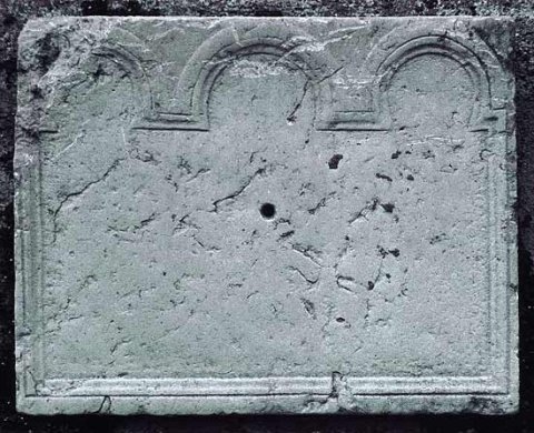 - Leeres geglättetes Feld mit profiliertem Rahmen, der oben drei Bögen bildet.