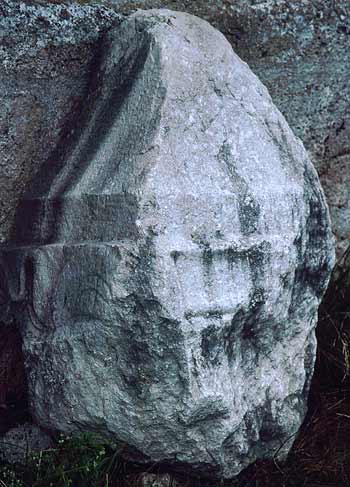 - Altar mit Pyramidenaufsatz. Auf den Nebenseiten oben Delphine. Inschrift völlig zerstört.