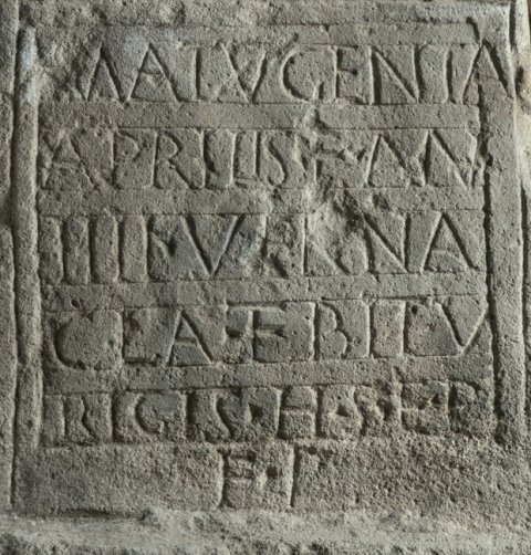 - Matugenta / Aprilis f(ilia) an(norum) / IIII vernac(u)/la T(iti) F(lavii) Bitu/rigis h(ic) s(ita) e(st) p(ater) / f(iliae) p(osuit)