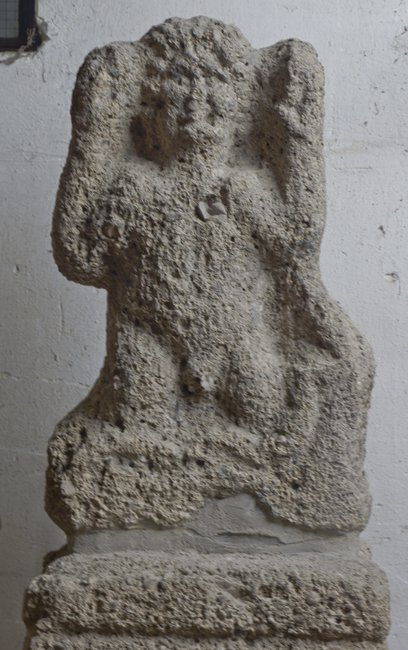 - Mythos : Felsgeburt des Mithras (petra genetrix). Jüngling mit erhobenen Armen, bis zu den Oberschenkeln sichtbar. Unten Schlange. Vierkantiger Sockel.