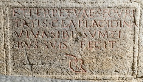 - D(is) M(anibus) // et perpetuae securi/tatis Cla(udia) Placidina / viva sibi sum(p)ti/bus suis fecit