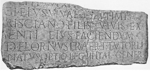 - ---] / [---] militis vixi[t ---] / [--- coniu]gi eius vivae et Septimis / [--- et P]riscano fili(i)s vivis ex / [cautione testa]menti eius faciendum / [curaverunt Cla]ud(ius) Florinus frater et tutor li/[beror(um) et --- D]onatus optio leg(ionis) III Ital(icae) gener