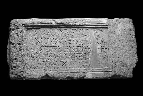 - Urso Ursuli (filio) / an(n)o(rum) XXX et Suadra / ux(or) Calventi(i) f(ilia) (viva) f(ecit) / et Ursulus et R[es]tu/ta ux(or)