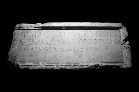 - D(is) M(anibus) Vibius Catussa v(ivus) f(ecit) sibi et / Marcellinae ux(ori) an(norum) XXXII et Vibiae / Finitae matri carissimae
