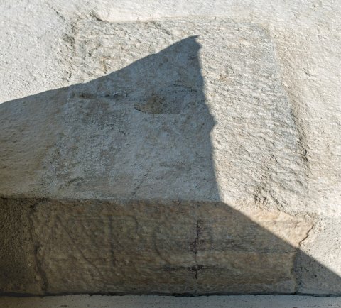 - seitlich abgebr., in der Oberseite Dübelloch mit Gusskanal