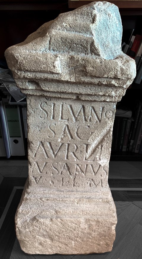 - Silvano / sacrum / Aur(e)li(us) / Alusanus / v(otum) s(olvit) l(ibens) l(aetus) m(erito)
